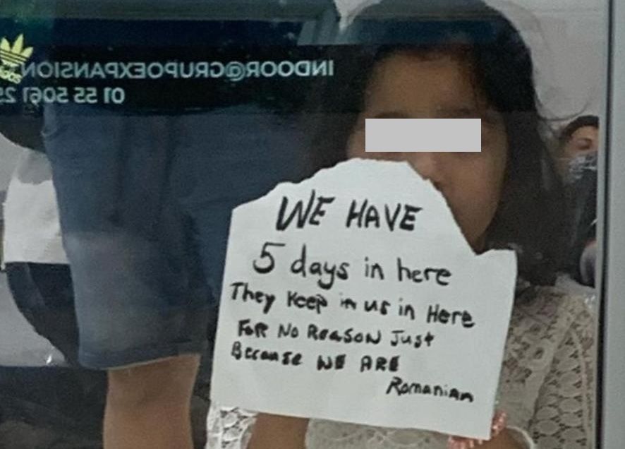 Ciudadanos rumanos que arribaron hace 8 días a México vía el aeropuerto internacional de Cancún, permanecen retenidos sin comida ni agua en los pasillos de llegadas internacionales sin que al momento alguna autoridad haya informado de esta situación.
