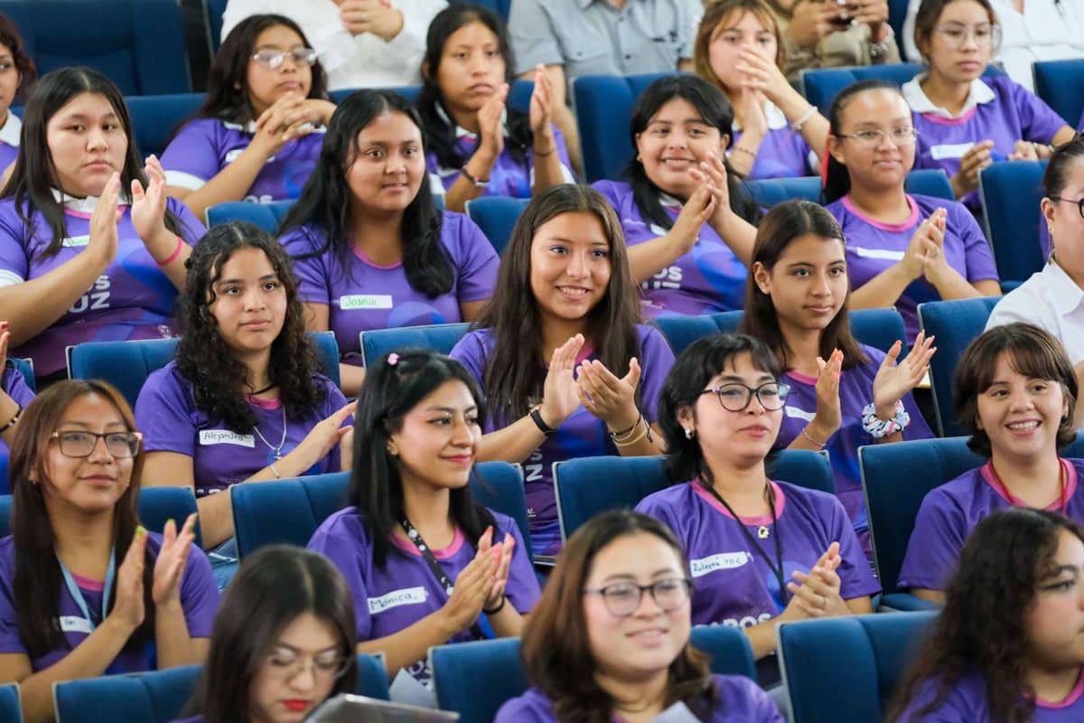 Cancún.- Jóvenes mujeres, bachilleres y universitarias, integrantes de las Redes de Mujeres Jóvenes “Faros de Luz”, rindieron protesta en el Instituto Tecnológico de Cancún para trabajar en la detección de casos de violencia al interior de las escuelas y combatirla.