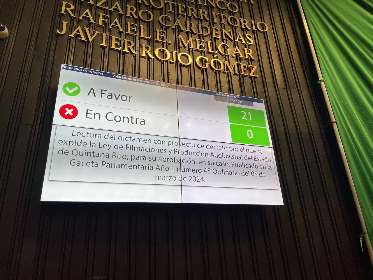 Se aprueba Ley de Filmaciones y Desarrollo Audiovisual en Quintana Roo para impulsar nueva industria. Dicha ley busca diversificar la economía del estado y crear oportunidades de empleo en el sector audiovisual, siguiendo el ejemplo de California, en Estados Unidos.