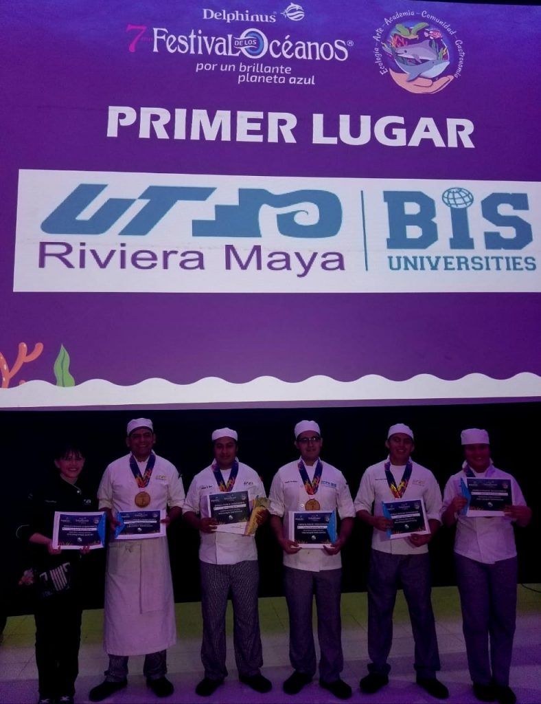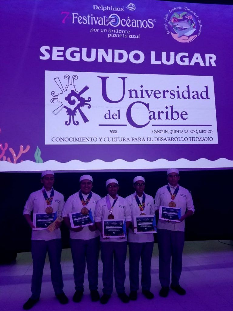 Alumnos de cuatro universidades de Quintana Roo compitieron por la supremacía de sabor basados en proteínas sustentables del mar como parte del Intercolegial Gastronómico del séptimo Festival de los Océanos del Caribe Mexicano, donde la Universidad Tecnológica de la Riviera Maya, resultó ganadora del certamen, en la que compartieron escenario con la Universidad del Caribe que obtuvo el segundo lugar, el Centro Universitario Gastronómico que ganó el tercero y la Universidad Tecnológica de Cancún en el cuarto puesto.