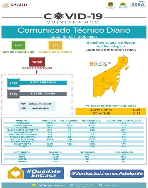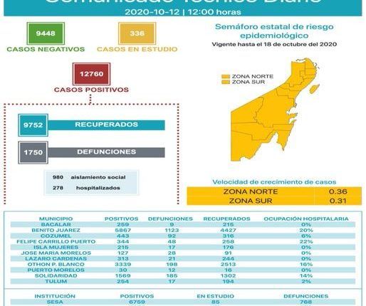 Suma Quintana Roo 12 mil 760 casos positivos a Covid-19