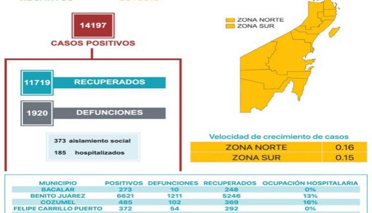 Suma Quintana Roo 14 mil 197 casos positivos a Covid-19.
