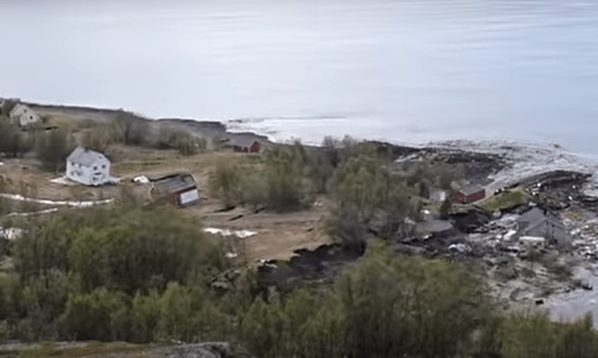 Esto ocurrió en el municipio de Alta, donde el miércoles por la tarde una enorme porción de tierra de unos 600 metros se hundió en el mar.