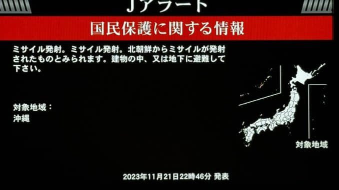 El Centro de Gestión de Crisis del Primer Ministro de Japón, informó que el proyectil lanzado desde Corea del Norte esta noche sobrevoló el área que comprende la prefectura de Okinawa alrededor de las 22:55 horas y pasó al Océano Pacífico.