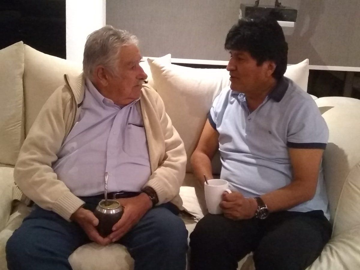 Morales publicó una imagen de ambos sentado en un sofá y hablando informalmente, mientras Mujica toma mate y Morales una bebida de una taza.