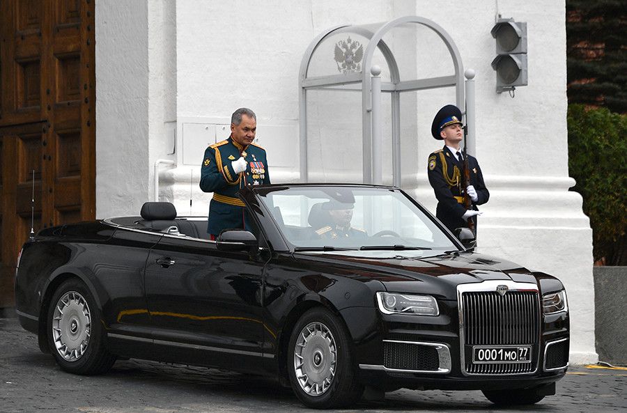 Como novedad, debuta en la Plaza Roja la nueva limusina descapotable rusa Aurus Senat Cabriolet, perteneciente al proyecto estatal Kortezh.