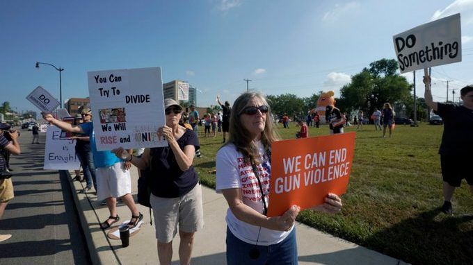 Decenas de personas se manifestaron contra el Presidente de Estados Unidos, Donald Trump, durante su visita a una hospital en Dayton, Ohio