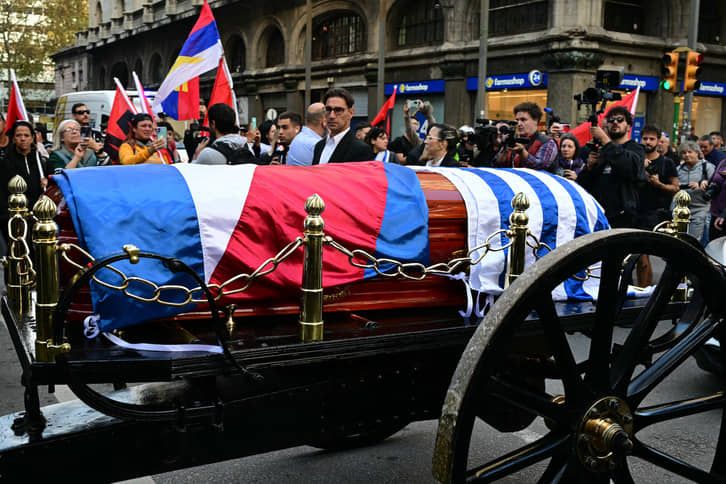 Orsi y Topolansky abrieron este miércoles a las 10:00 locales (07:00 en CdMx) el cortejo fúnebre que partió de la sede de la Presidencia con destino al Palacio Legislativo.