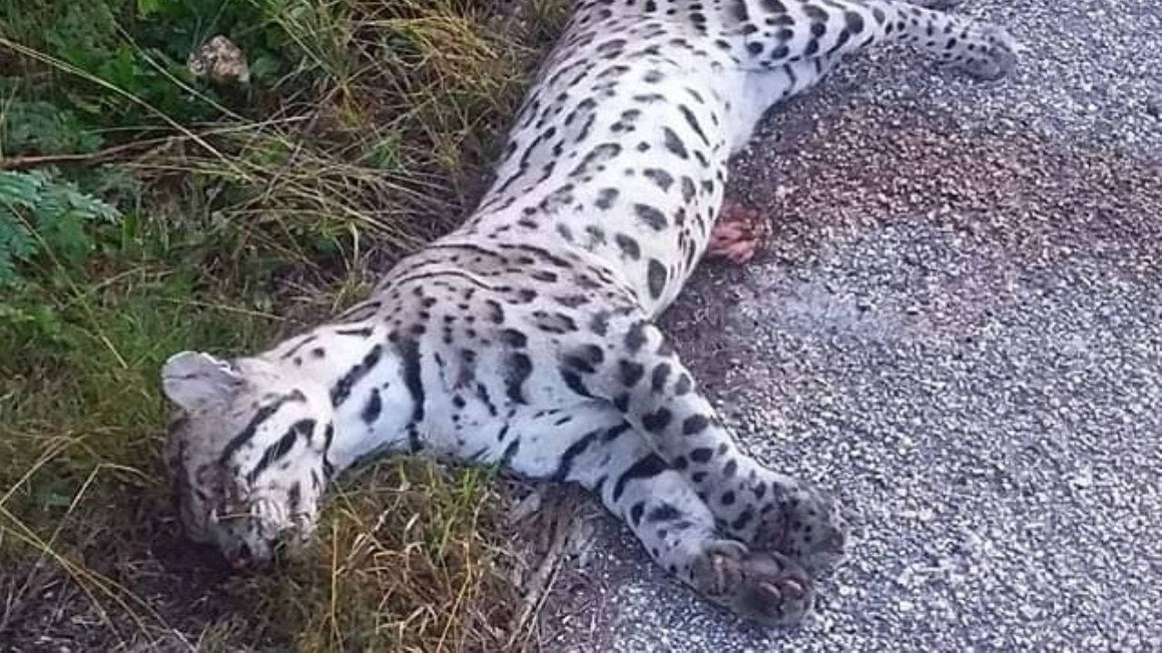 Un ocelote de mediana edad fue arrollado sobre la avenida Kukulcán que comunica con la zona costera, cerca del establecimiento denominado El Tábano.
