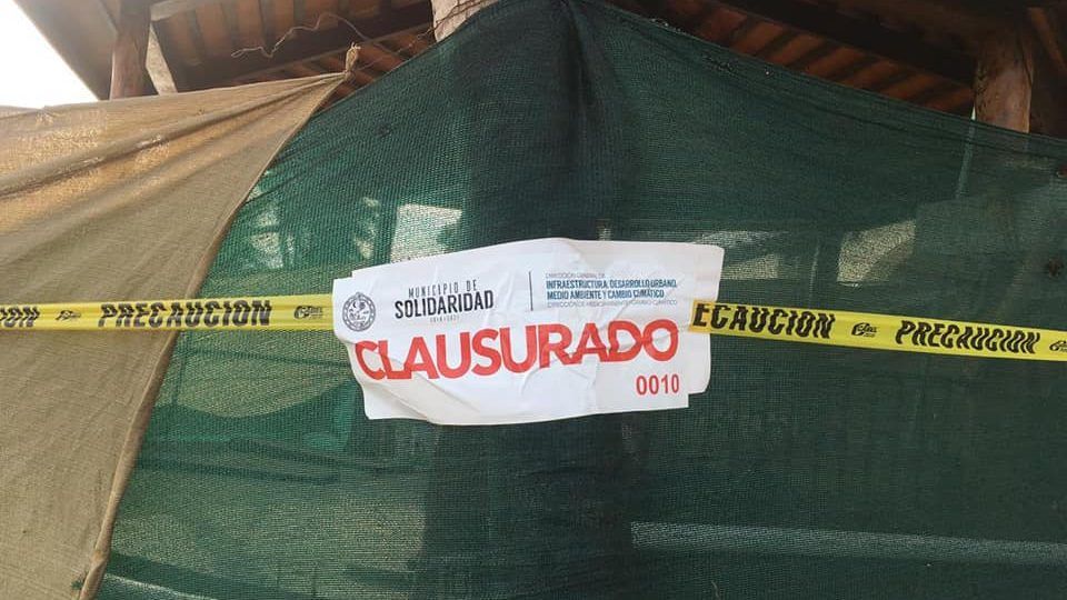 La construcción de una palapa que está realizando el hotel Panama Jack fue clausurada de manera precautoria por la dirección de medio ambiente de Solidaridad, esto con la finalidad de comprobar la legalidad y el apego a la normativa ambiental y prever un daño ya que fue capturado en video el momento en que trabajadores de esta obra se encontraban vertiendo deshechos de construcción al mar.