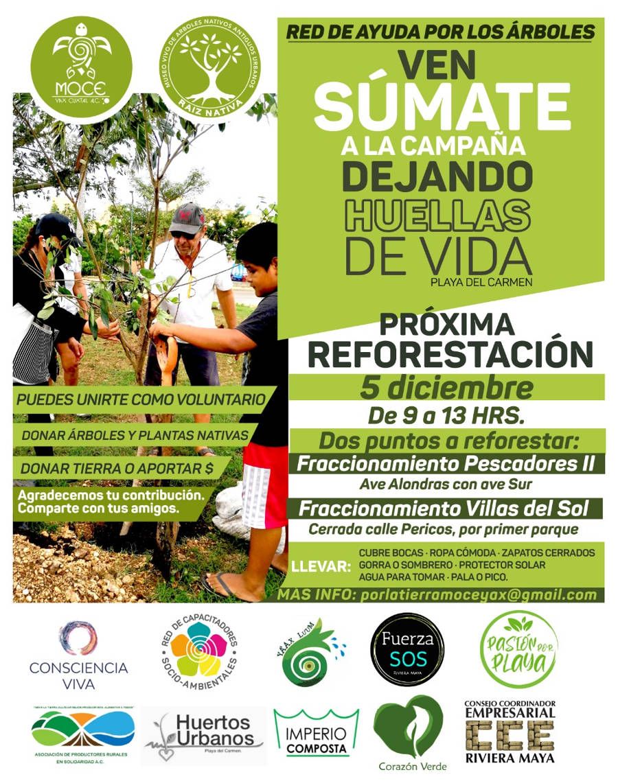 La Red de ayuda por los árboles a través de su campaña “Dejando huellas de vida” invita a la ciudadanía a que se unan a la actividad de reforestación de la ciudad, este sábado 5 de Diciembre de 9:00 am a 1:00 pm