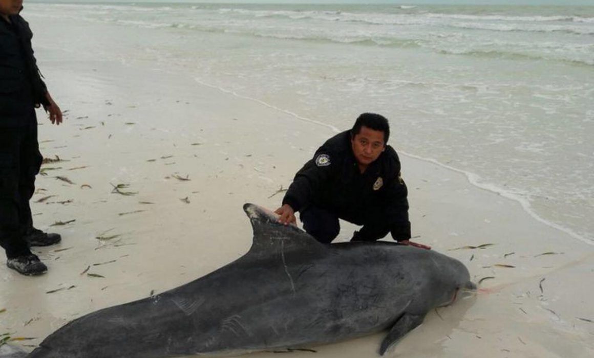 El cadáver de un delfín con visibles huellas de cortes de redes de pescadores fue encontrado muerto por habitantes en la Laguna Yalahau, que se encuentra en el trayecto entre el puerto de Chiquilá y la isla de Holbox.