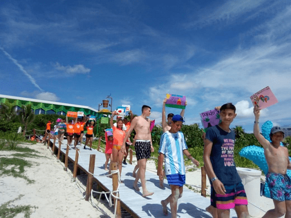 Equipados con letreros y la voluntad de marcar la diferencia, los huéspedes y el personal marcharon por la playa, ahora libre de sargazo, para enviar un mensaje al mundo exigiendo un cambio a favor del medio ambiente, mismo que ya no se puede retrasar más.