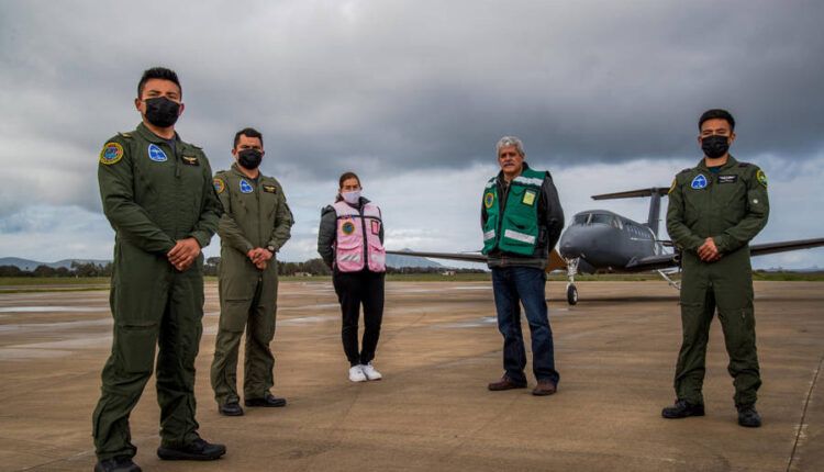 Para esta actividad, un avión King Air 350i se acondicionó con un sistema de aspersión, con el fin de coadyuvar con los trabajos realizados por las autoridades civiles y militares, en el combate de mencionada deflagración.