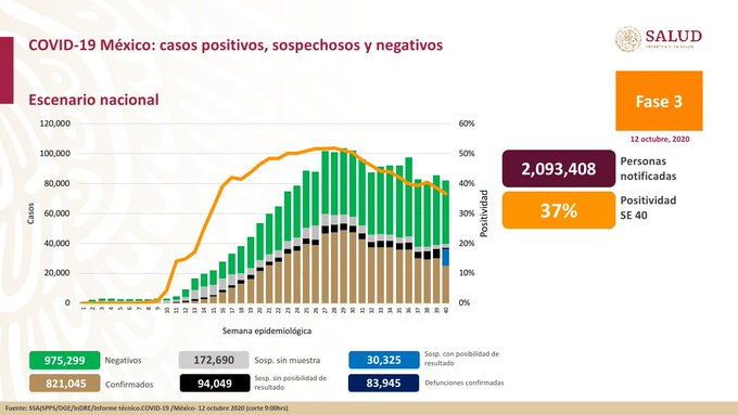 • El número de casos confirmados a Covid-19 en México es de 821,045