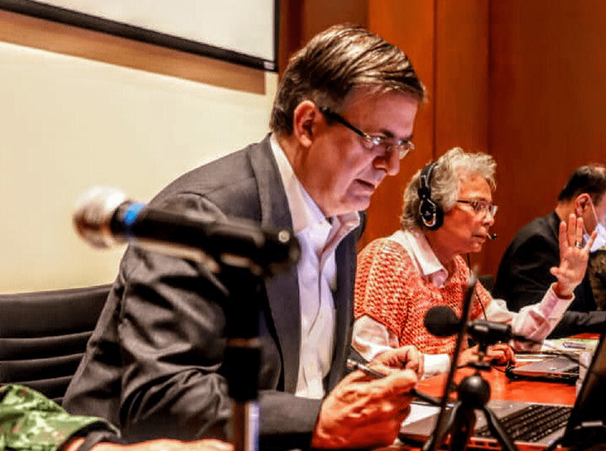En la videoconferencia participó Marcelo Ebrard, secretario de Relaciones Exteriores; Jorge Alcocer Varela, secretario de Salud; Julio Scherer Ibarra, consejero Jurídico de Presidencia; Alfonso Durazo, secretario de Seguridad y Protección Ciudadana; Luis Cresencio Sandoval, secretario de la Defensa Nacional y José Rafael Ojeda Durán, secretario de Marina