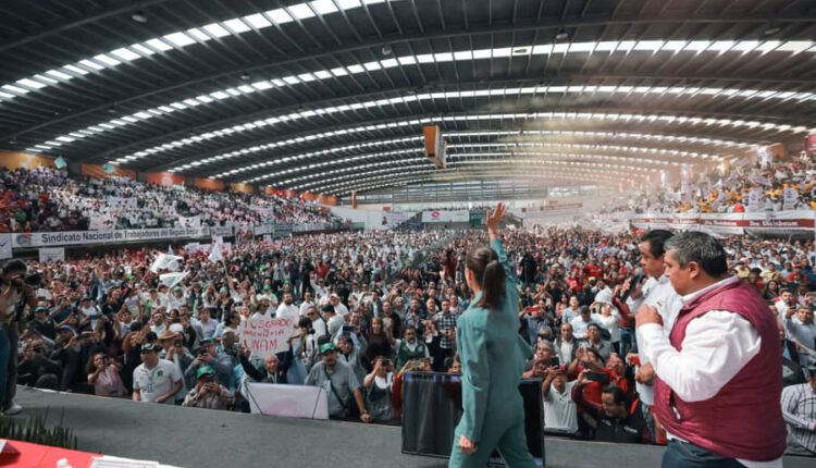 Sheinbaum dio a conocer que se construye un programa de gobierno que permita seguir apoyando a la planta laboral. Ello frente a miles de sindicalistas que colmaron la Sala de Armas de la Ciudad Deportiva Magdalena Mixhuca, a diferencia del semivacío Estado Azul de hace poco más de 10 días.