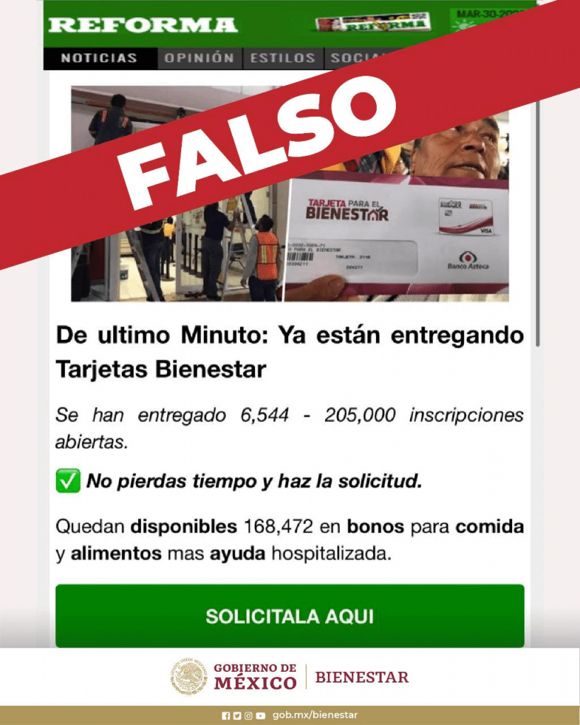 Alertan sobre falso apoyo de Tarjetas para el Bienestar
