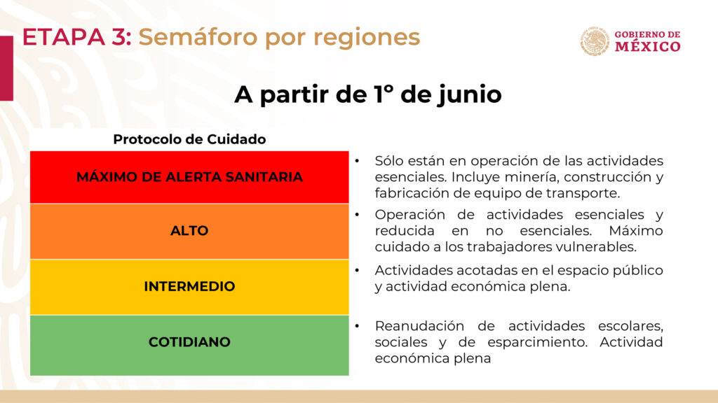 Desde el 1º de junio se desarrollará en todo el país el sistema de semáforo por regiones para la reapertura de actividades económicas, sociales y educativas.