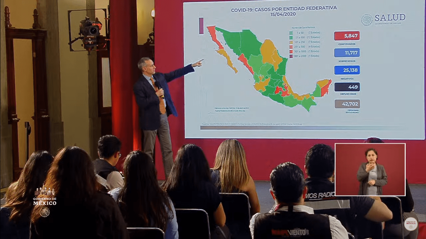 En el informe diario de la Secretaría de Salud del Gobierno de México sobre el avance del COVID-19, se informó que ya son 5,847 casos confirmados de COVID-19 y la cifra de defunciones se elevó a 449.