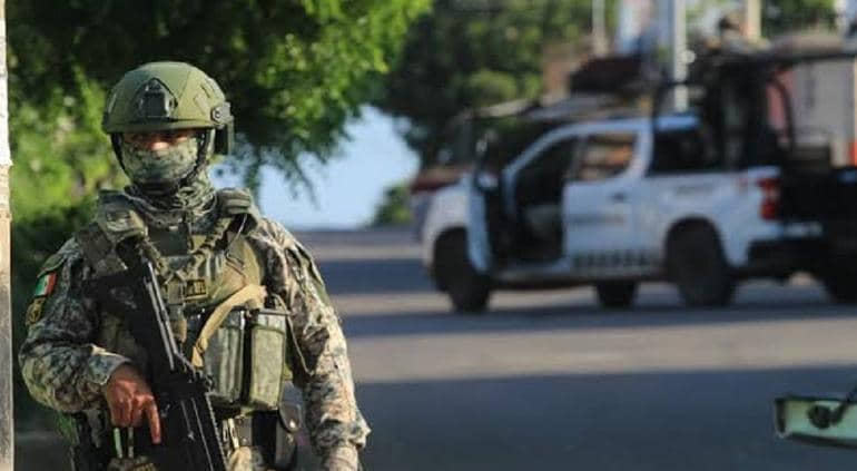 En Escuinapa, se detuvo a tres personas, se confiscaron ocho armas de fuego, un aditamento lanzagranadas, 23 cargadores, 772 cartuchos, ocho granadas, tres chalecos tácticos, 18 teléfonos celulares y dos vehículos, uno de ellos con blindaje de fábrica.