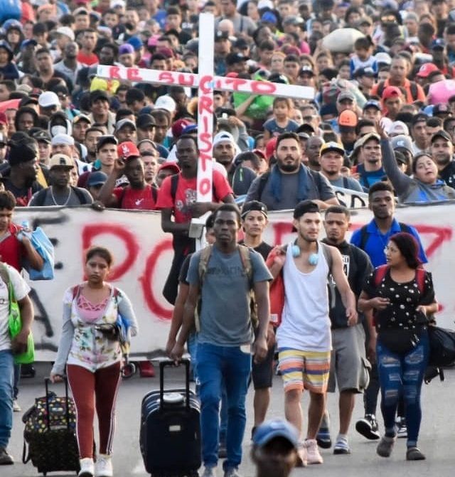 En plena Navidad, el contingente de unos 7 mil extranjeros, principalmente centroamericanos y caribeños, marchó desde la mañana unas siete horas bajo un intenso calor de más de 30 grados centígrados.