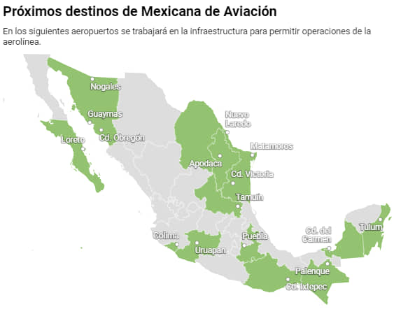 Con información de Milenio https://www.milenio.com/politica/rutas-de-mexicana-aviacion-aerolinea-tendra-vuelos-20-destinos