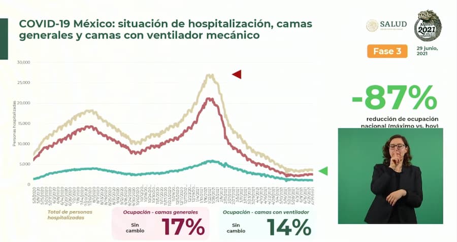 El subsecretario de Prevención y Promoción de la Salud, Hugo López-Gatell, dijo este martes 29 de junio de 2021 que se está registrando un incremento en los casos de COVID-19 en México, pero afirma que la ocupación hospitalaria se mantiene a la baja.