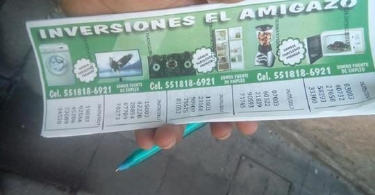 Comerciantes establecidos y ambulantes del Centro Histórico de la Ciudad de México participan en sorteos semanales organizados por una organización denominada “Inversiones el amigazo”. A decir de los involucrados, las rifas son organizadas por personas de origen colombiano quienes emplean a jóvenes de la zona para visitar los establecimientos y vender los boletos con series de números.
