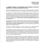 Ante versiones periodísticas que circulan en medios y redes sociales sobre un supuesto aumento en el costo de la electricidad, la Comisión Federal de Electricidad emitió un comunicado donde niega el hecho y hace las siguientes aclaraciones.