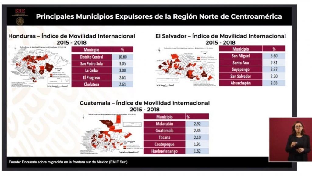 Durante la conferencia de prensa del presidente Andrés Manuel López Obrador, el canciller Ebrard anunció que los municipios en Honduras son: Distrito Central, San Pedro Sula, La Ceiba, El Progreso y Choluteca.