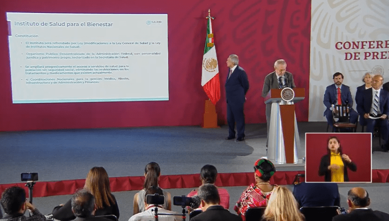Detalló que los servicios estatales en las entidades federativas y el IMSS Bienestar atienden al 55 por ciento de la población mexicana, pero solo cuentan con el 21 por ciento de los hospitales. Añadió que el Gobierno federal se propone alcanzar el acceso universal a la salud para todos los mexicanos a través de la transformación del sector para superar la inequidad y mejorar la calidad de los servicios, por eso se crea el Instituto de Salud para el Bienestar, que funcionará como organismo descentralizado y cuyo objetivo será proveer y garantizar la prestación gratuita de servicios de salud y medicamentos a la población sin seguridad social.