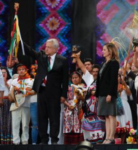 “Aquí en el Zócalo de la Ciudad de México, principal plaza pública del país, luego de recibir el bastón de mando de los pueblos originarios de nuestra gran nación, reafirmo el compromiso de no mentir, no robar y no traicionar al pueblo.