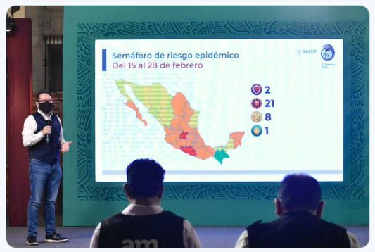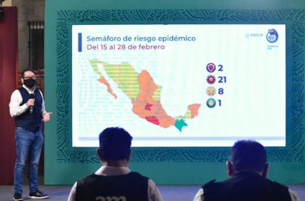 El semáforo epidemiológico ubicó a más de la mitad del país en color naranja de riesgo alto y sólo dos estados Guanajuato y Guerrero, en color rojo de máximo riesgo.
