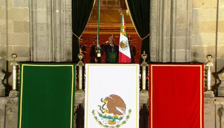Con la bandera de México, que recibió de manos de cadetes del Colegio Militar, el presidente López Obrador se asomó al balcón central del Palacio Nacional para dar el tradicional “Grito” en conmemoración del 211 aniversario del inicio de la Independencia de México.