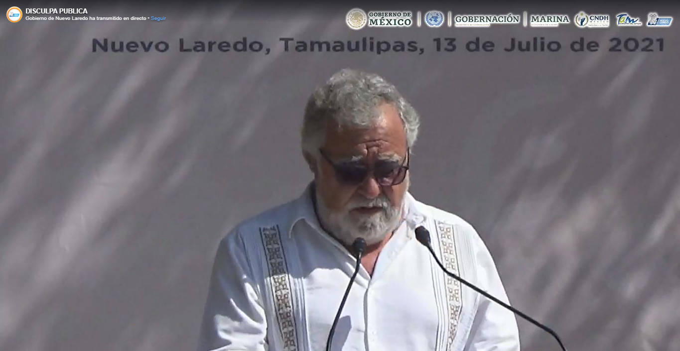 El subsecretario de Derechos Humanos, Población y Migración de la Secretaría de Gobernación, Alejandro Encinas Rodríguez, encabezó el acto de disculpa pública a familiares por la desaparición forzada de 27 personas, entre febrero y mayo de 2018, cometida por elementos de la Secretaría de Marina-Armada de México (Semar), en Nuevo Laredo, Tamaulipas.