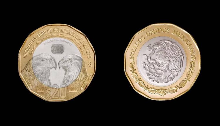 Ciudad de México.- Para conmemorar los 200 años de relaciones diplomáticas entre México y Estados Unidos, este miércoles 6 de diciembre se presentó la nueva moneda de 20 pesos que entró en circulación.