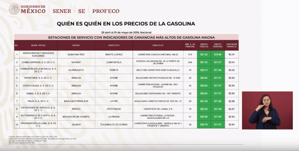“Tenemos información de las gasolineras que no dan completo de litro, y también las que sí dan litro de a litro. Todo esto para que nos ayuden los consumidores y que no sea en vano el esfuerzo que se está haciendo para que no aumente el precio de los combustibles”.
