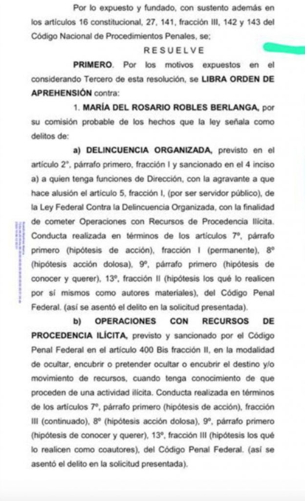 Esta mañana trascendió que se giró una orden de aprehensión contra la exsecretaria federal Rosario “R”, por su probable participación en delito de delincuencia organizada y operaciones con recursos de procedencia ilícita.