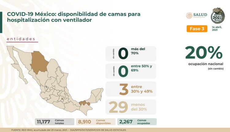 En camas con ventiladores, 80% están disponibles y 20% ocupadas.