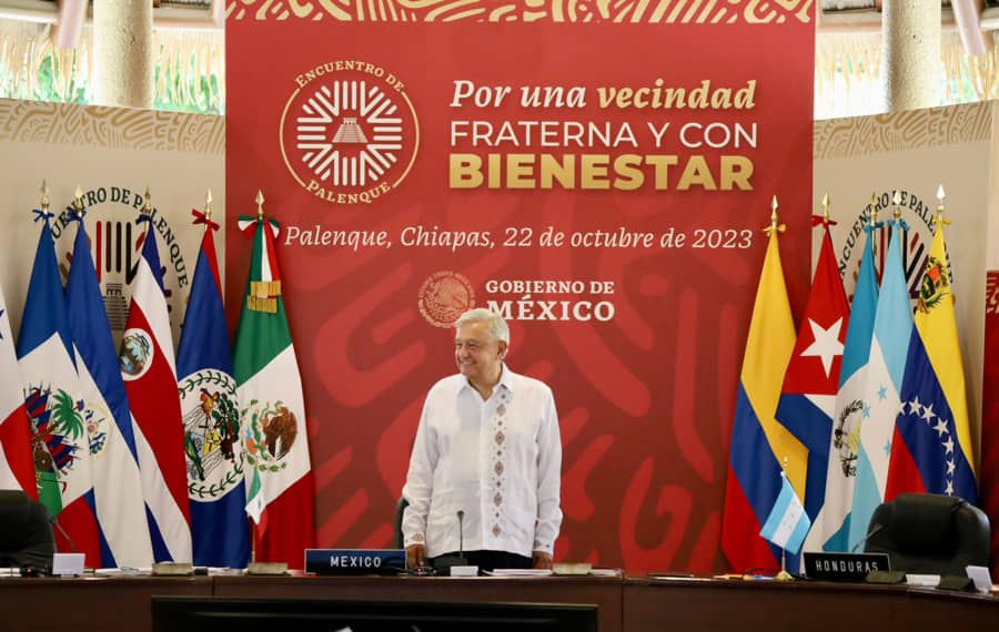 Al encabezar el Encuentro de Palenque, por una vecindad fraterna y con bienestar, el presidente Andrés Manuel López Obrador planteó la importancia de generar oportunidades de trabajo y condiciones que contrarresten el fenómeno migratorio y mejoren la calidad de vida de los pueblos de América Latina y el Caribe. Ñ