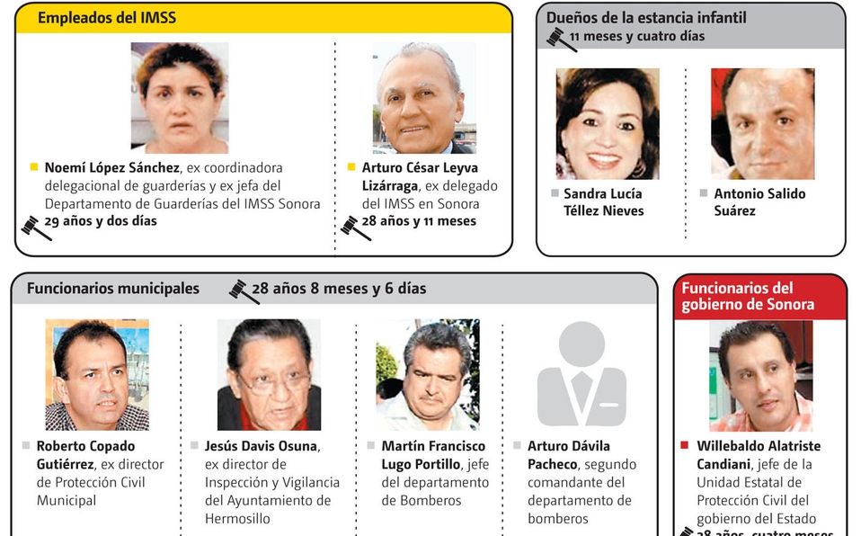 Personajes como Eduardo Bours, gobernador de Sonora 2003-2009, así como los ex directores del IMSS Daniel Karam y Juan Molinar Horcasitas, este último fallecido en mayo de 2015, nunca fueron considerados responsables por lo sucedido, a pesar de los señalamientos por negligencia y omisión en su actuación.