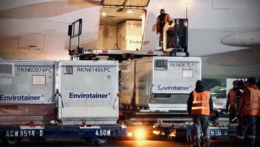 La madrugada de este lunes, llegó al Aeropuerto Internacional de Ciudad de México (AICM) un nuevo embarque de vacunas anticovid.