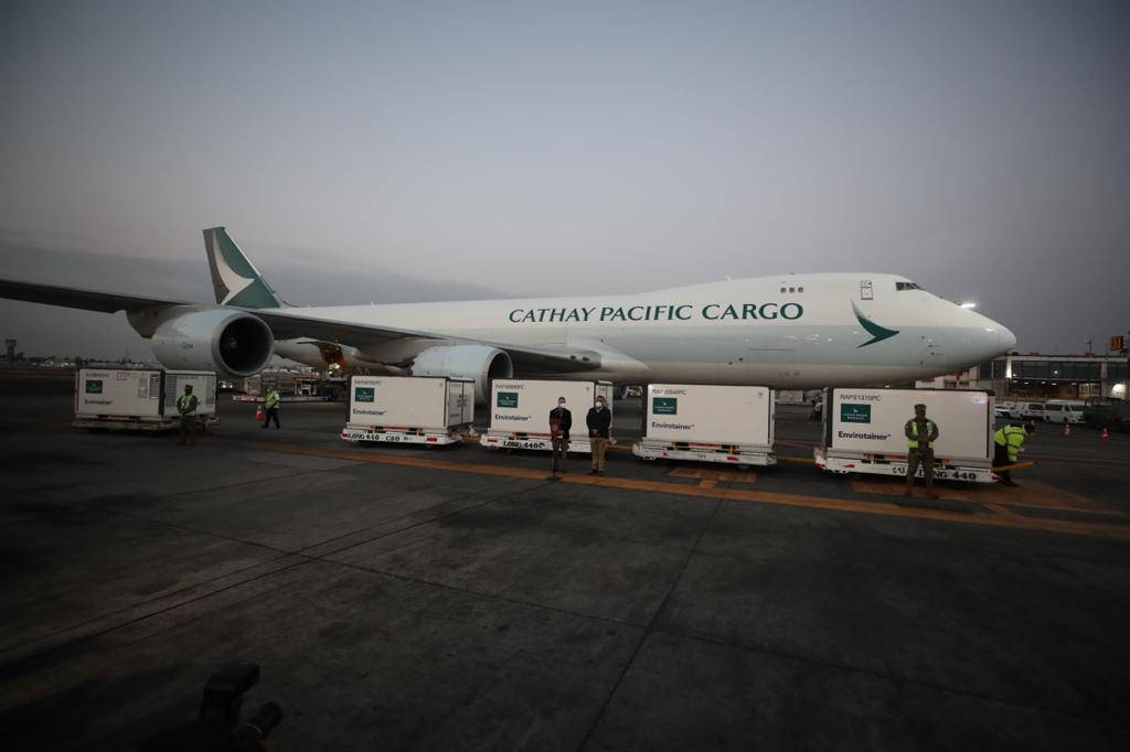 El vuelo CX086 de la aerolínea Cathay Pacific, que trajo el biológico, salió del Aeropuerto Internacional de Pekín con rumbo a México, con escalas en Hong Kong y Anchorage, Alaska.