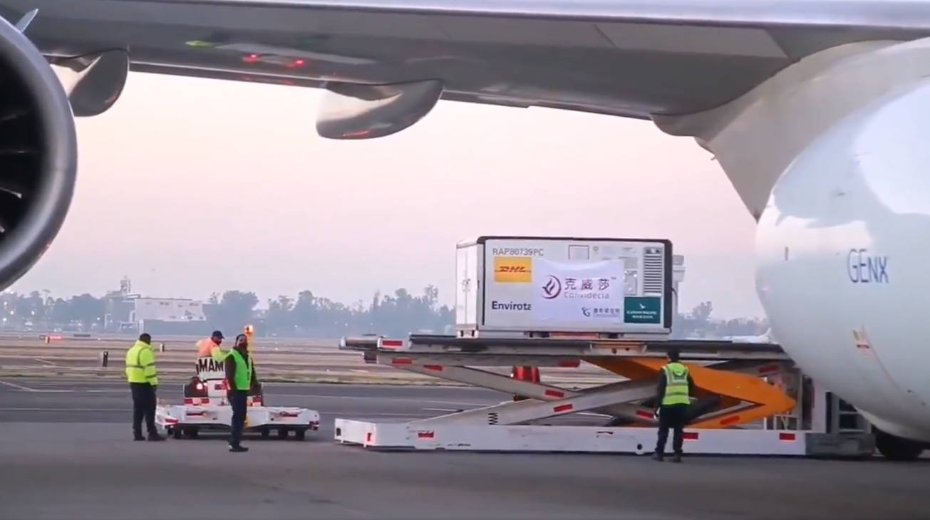 La madrugada de este jueves, arribó a México un avión con de tres millones de dosis de vacunas CansinoBio. Así lo informó por medio de su cuenta de Twitter el Secretario de Relaciones Exteriores Marcelo Ebrard.