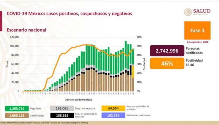 México llega a 1 millón 60 mil 152 casos positivos acumulados