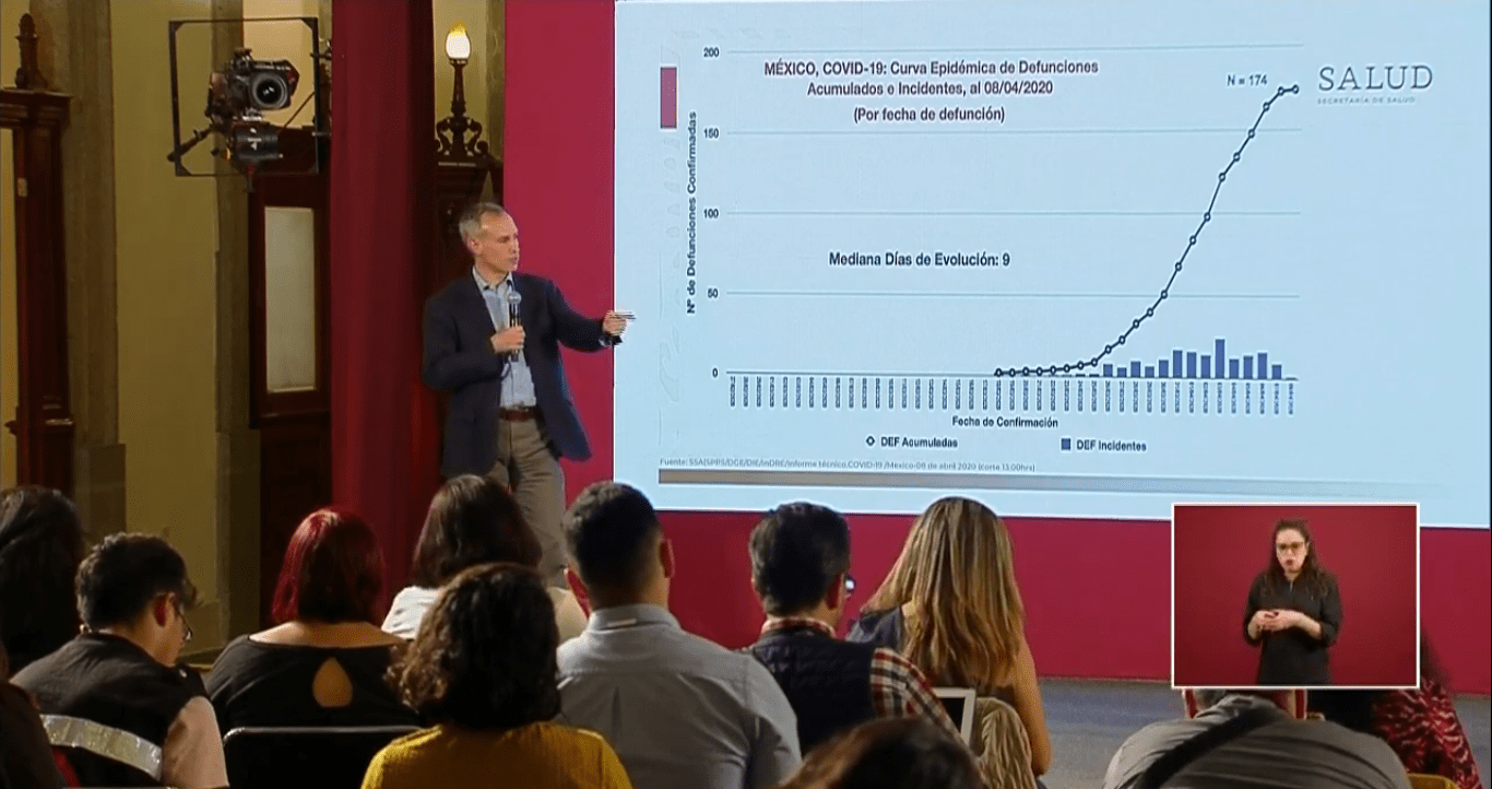 Autoridades de la Secretaría de Salud informaron que hasta el corte de hoy 8 de abril de 2020, en México suman 174 muertos por coronavirus y tres mil 181 casos confirmados.