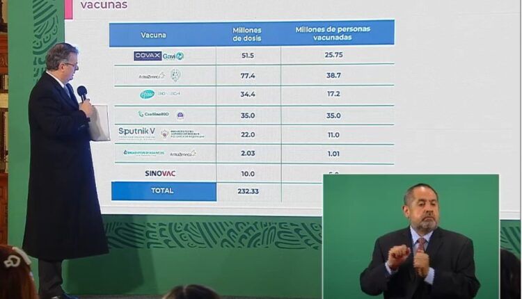 El secretario de Relaciones Exteriores (SRE), Marcelo Ebrard, afirmó esta mañana durante la conferencia de prensa que México tiene contratos firmados por 232.33 millones de vacunas contra covid-19.