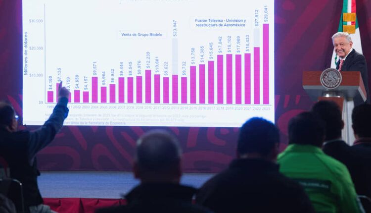 En conferencia de prensa matutina indicó que la Secretaría de Economía reporta la recepción de 29 mil 041 millones de dólares en el primer semestre por concepto de Inversión Extranjera Directa, lo que representa una cifra histórica.