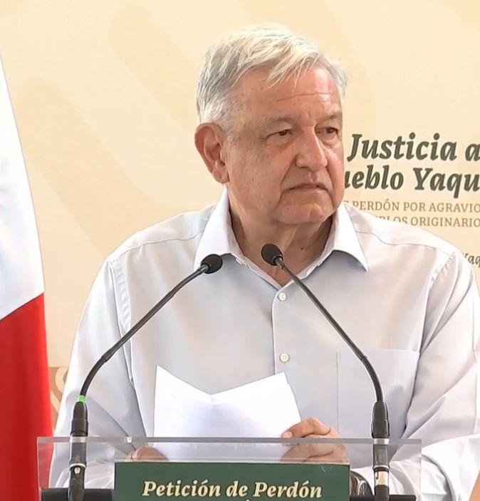 A nombre del Estado mexicano, el Presidente Andrés Manuel López Obrador pidió perdón a los pueblos yaquis por la marginación, abusos e injusticias, cometidos desde el porfiriato. Sostuvo que ese régimen ha quedado atrás y ahora se reparará, en la medida de los posible, el daño, a partir de un programa integral en el que se destaca la restitución de hasta 20 mil hectáreas, garantizar el derecho al agua y un plan de bienestar social.